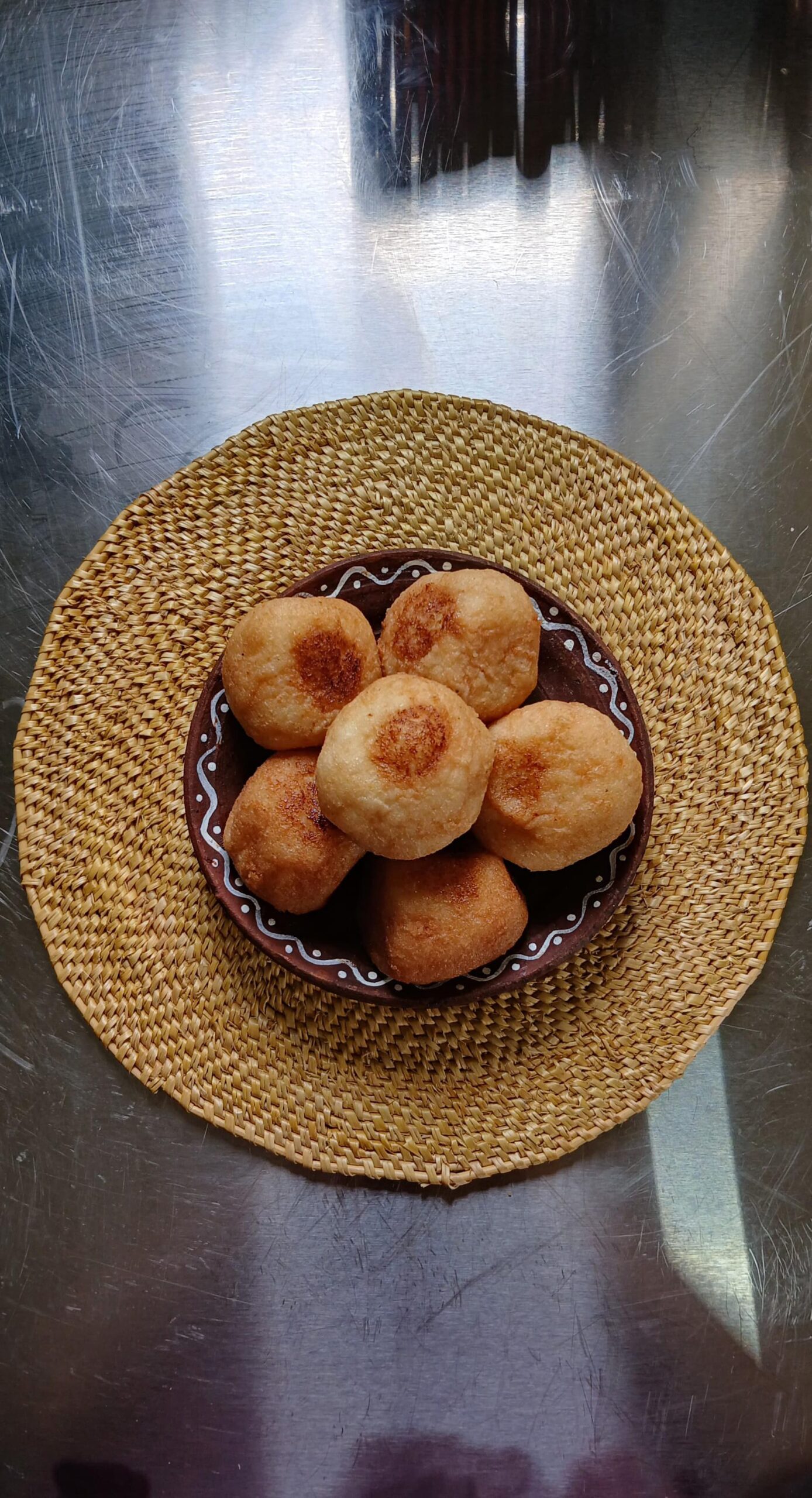 A crunchy, deep-fried Odia snack made from whole wheat flour dough, shaped into delicate patterns, and lightly sweetened or plain, often enjoyed during festive occasions.